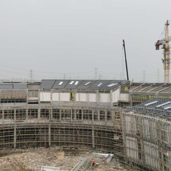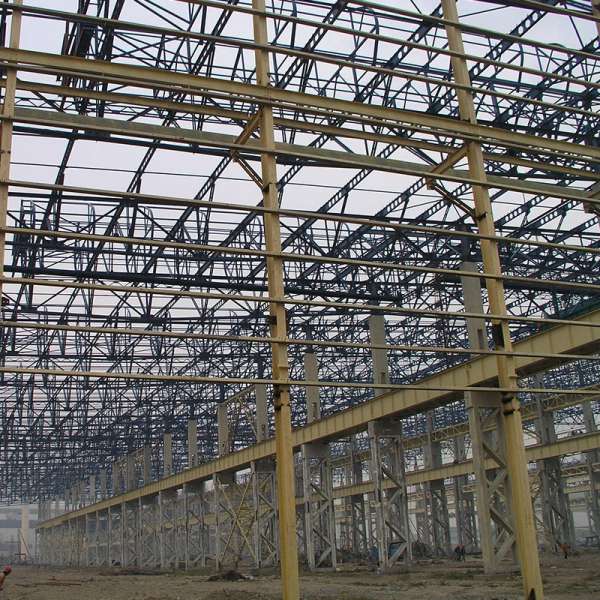 構成網架的基本單元有三角錐,三棱體,正方體,截頭四角錐等。這些基本單元可組合成平面形狀的三邊形,四邊形,六邊形,圓形或其他任何形體。具有空間受力、重量輕、剛度大、抗震性能好等優(yōu)點;可用作體育館、影劇院、展覽廳、候車廳、體育場看臺雨篷、飛機庫、雙向大柱網架鋼結構距車間等建筑的屋蓋。缺點是匯交于節(jié)點上的桿件數(shù)量較多,制作安裝較平面結構復雜。